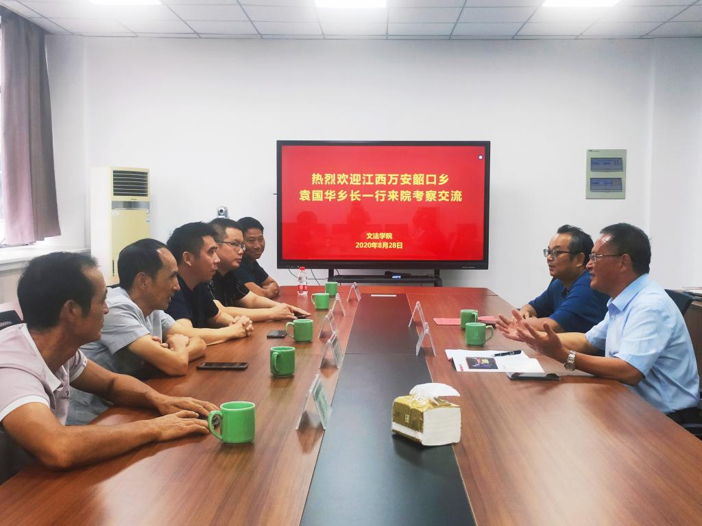 8月28日下午,由鄉長袁國華率領的江西萬安縣韶口鄉考察團一行五人來文法學院交流。院長王長金對來賓表示熱烈歡迎。