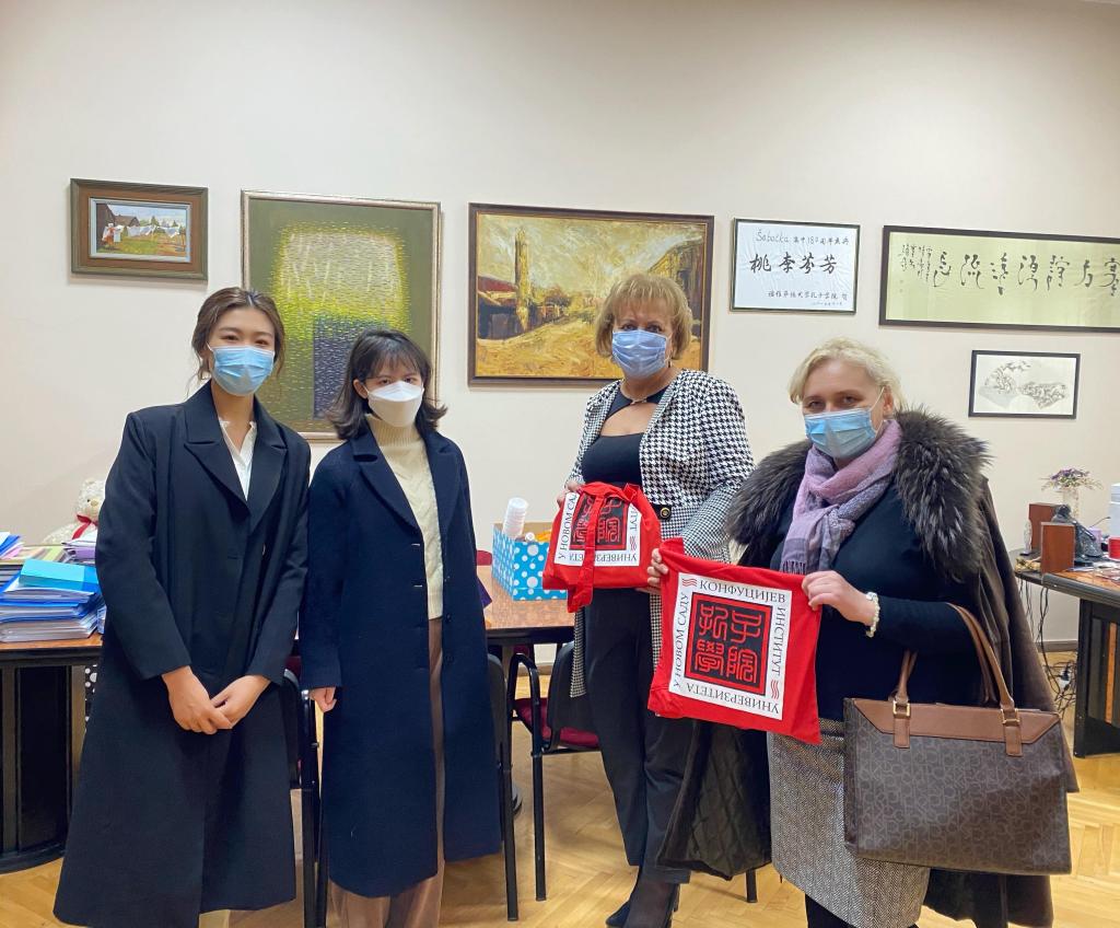 沙巴茨高中校長瑪麗安娜·伊薩柯維奇(Mariana Isakovic)給予了孔院教師熱情接待。瑪麗安娜表示,除了務實推進漢語課程教學、注重HSK考級之外,諾大孔院以茶為媒開展的中國“茶文化”特色宣介活動受到師生歡迎,增進了師生及當地民眾對中國的認識。同時對疫情給教學活動帶來的不利影響表示理解,希望孔院繼續給予大力支持,為沙巴茨高中學生提供更多學習漢語和文化交流的機會,并請轉達對中方院長陳晦的致意。雙方一起回顧了幾年來的合作經歷和工作成效,一致希望鞏固辦學合作,提升教學內涵。