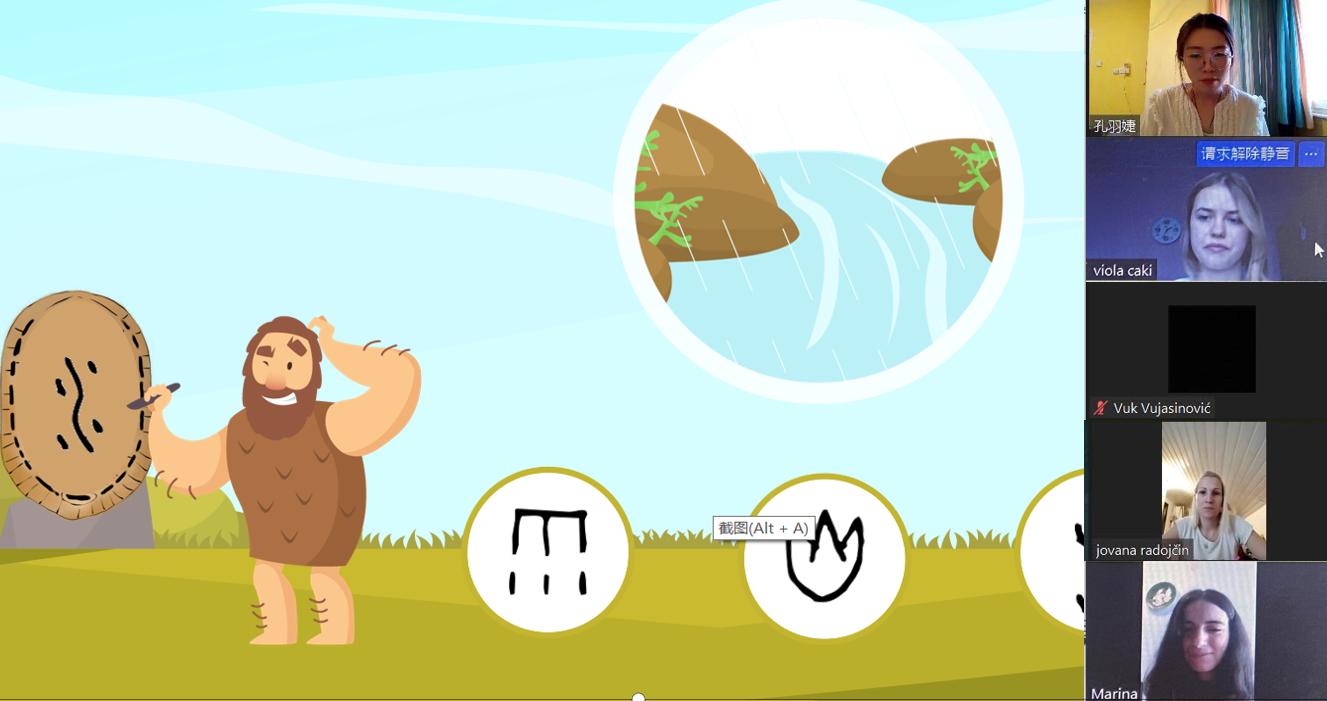 課堂上,諾大孔院教師為漢語初學者介紹了漢語拼音、漢字、語法等基礎語言知識,并通過展示漢字演變過程來增進學生對漢語的理解。在師生問答環節,學生們表示,漢語聽起來像唱歌一樣音調起伏有韻律,他們都對漢語和中國文化充滿濃厚興趣。值得一提的是,一位名叫烏珂·烏雅西諾維琪(Vuk Vujasinovi?) 的同學興奮地分享了塞爾維亞團隊在北京冬奧會出場的視頻,引起了大家的積極討論。烏珂·烏雅西諾維琪還表示,希望自己可以學好漢語,更多了解中國,將來有機會以翻譯的身份出現在中塞友誼交流的現場。